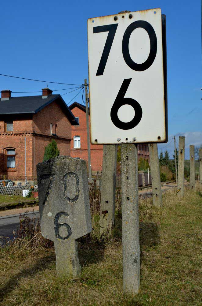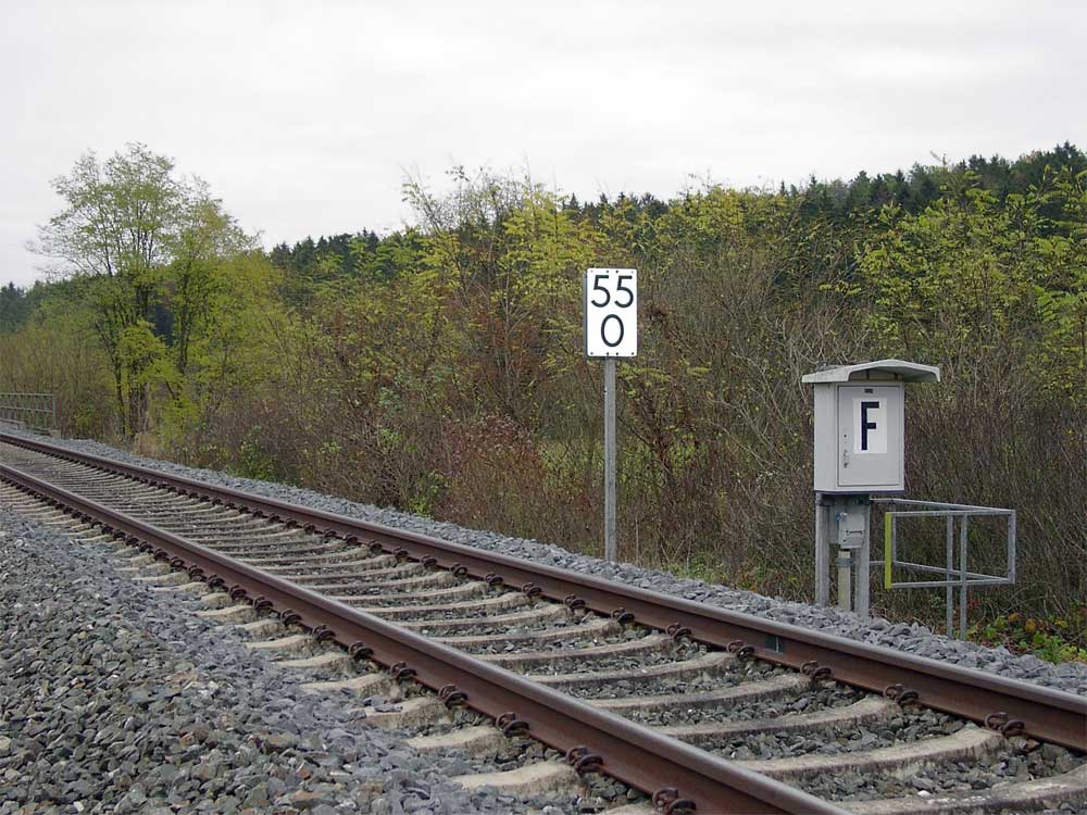 km 50,8 (Tafel) und km 50,9 (Stein) zwischen Oberstreu und Mellrichstadt Bf