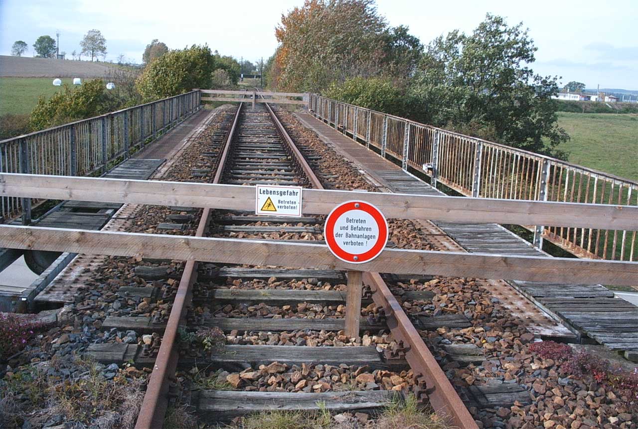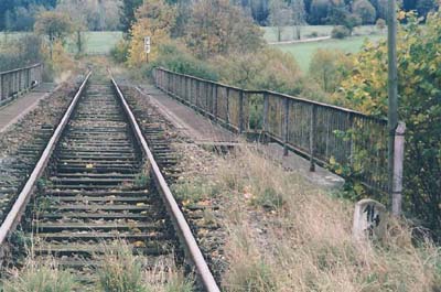 Gleisende vor der fehlenden Brücke über die BAB 9 zwischen Krölpa (b Auma) und Moßbach (b Neustadt/Orla)