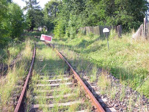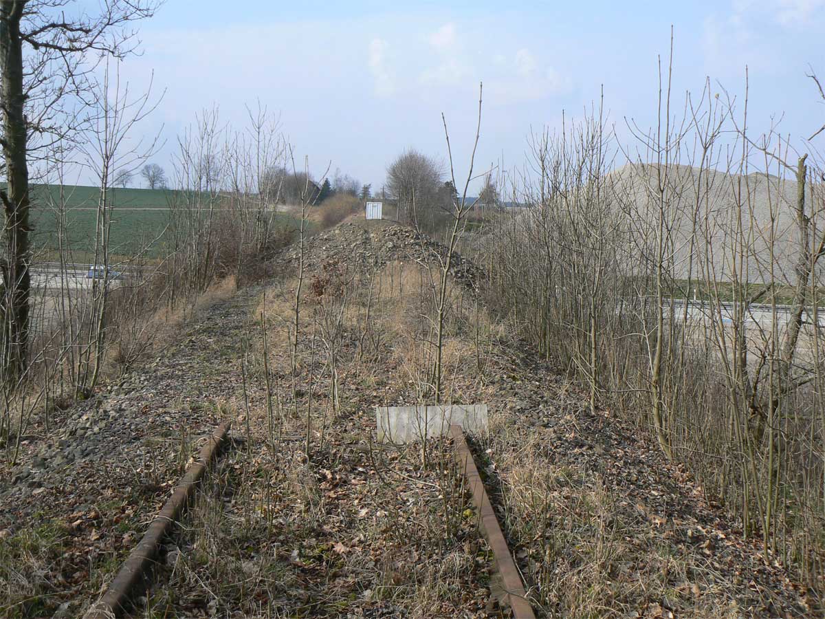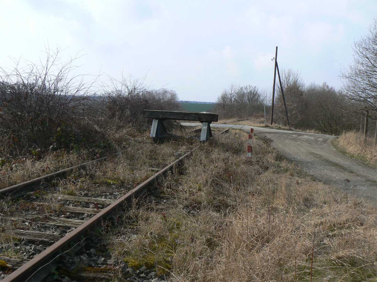 Gleisabschluss aus Ri Triptis, etwa bei km 13,8 zwischen Krölpa (b Auma) und Moßbach (b Neustadt/Orla)