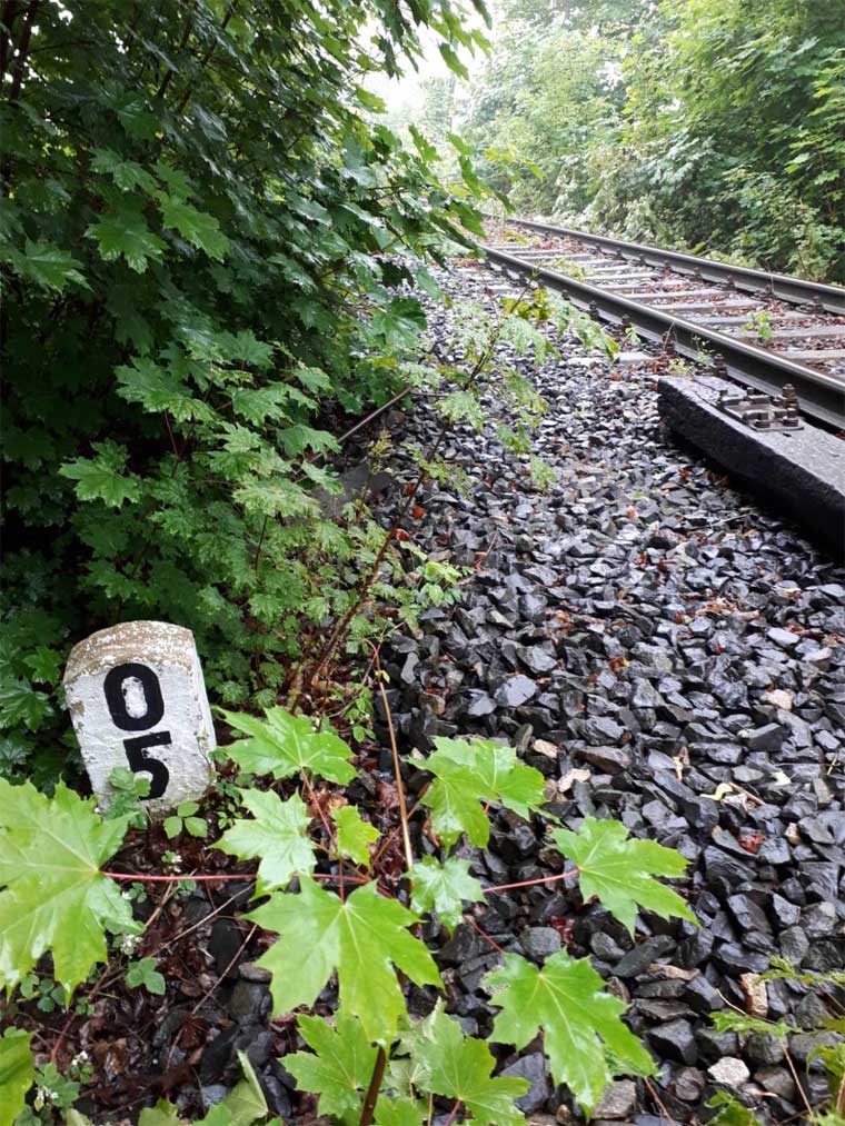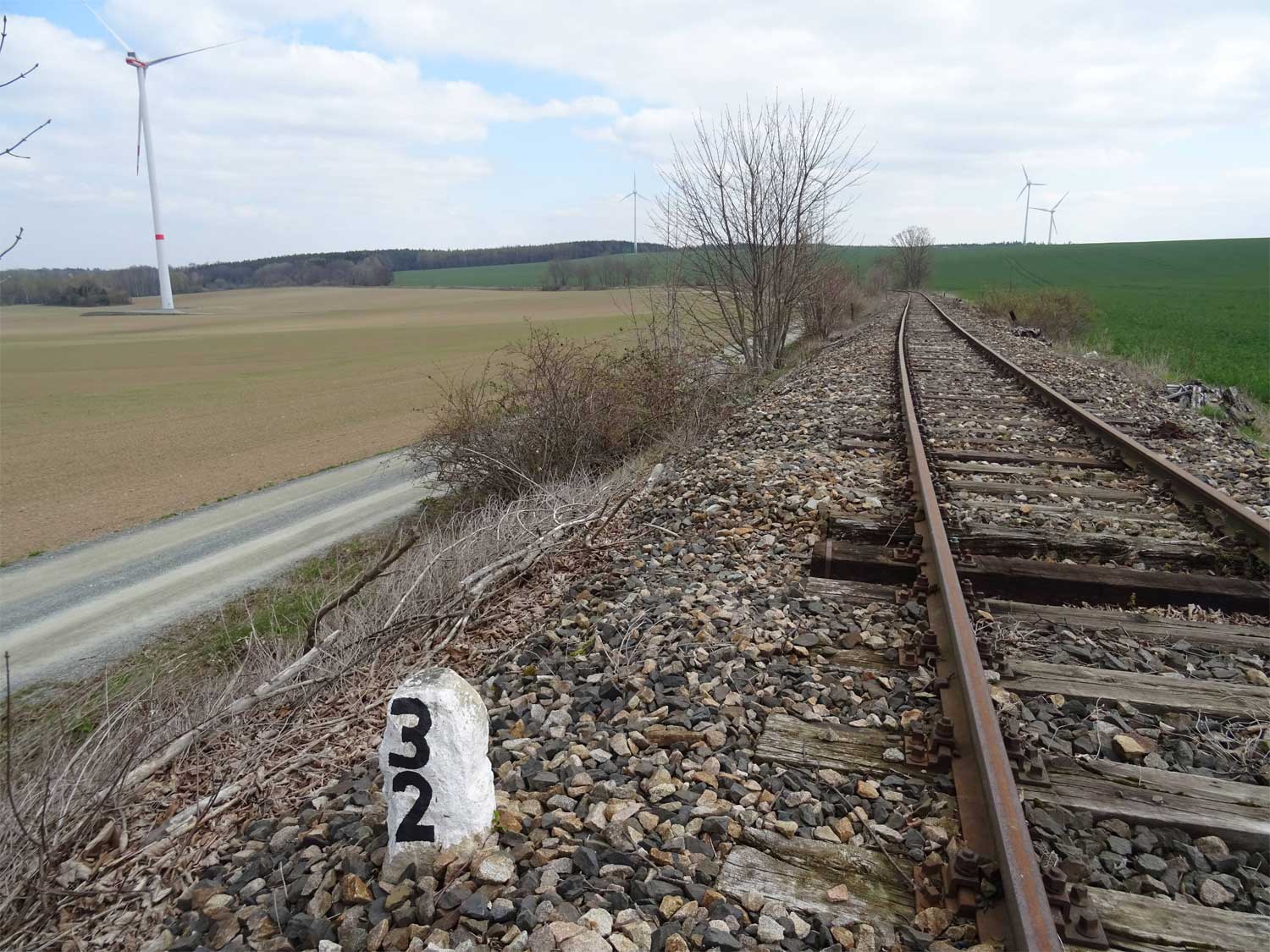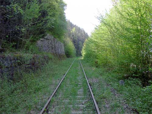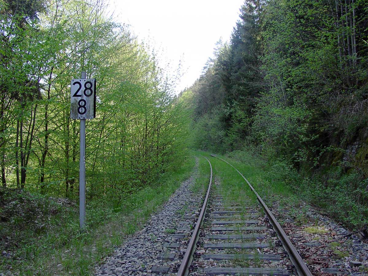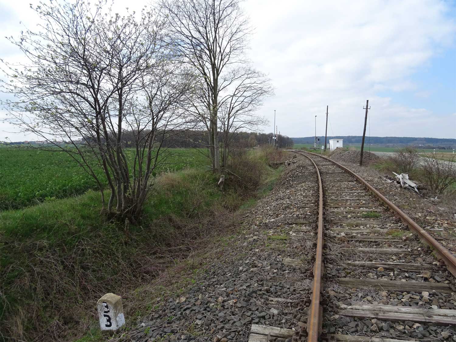 km 14,7 - abseits bereits abgebauter Bahnhofsgleise