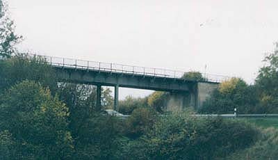 Zwischen km 14,0 und 14,1 liegt die Eisenbahnbrücke über die BAB 9.